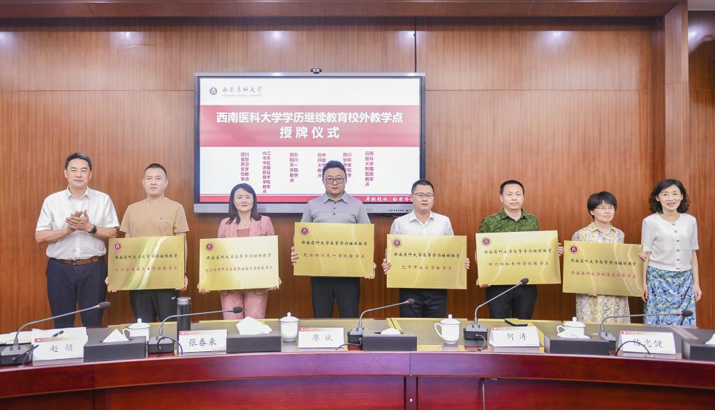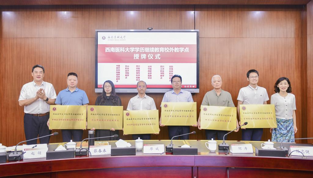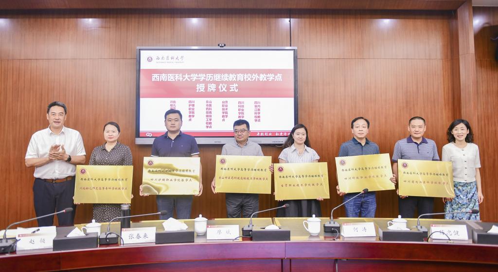 在第一阶段会议中,廖斌和何涛对今年教育部新备案的公司18个学历继续教育校外教学点进行了授牌。