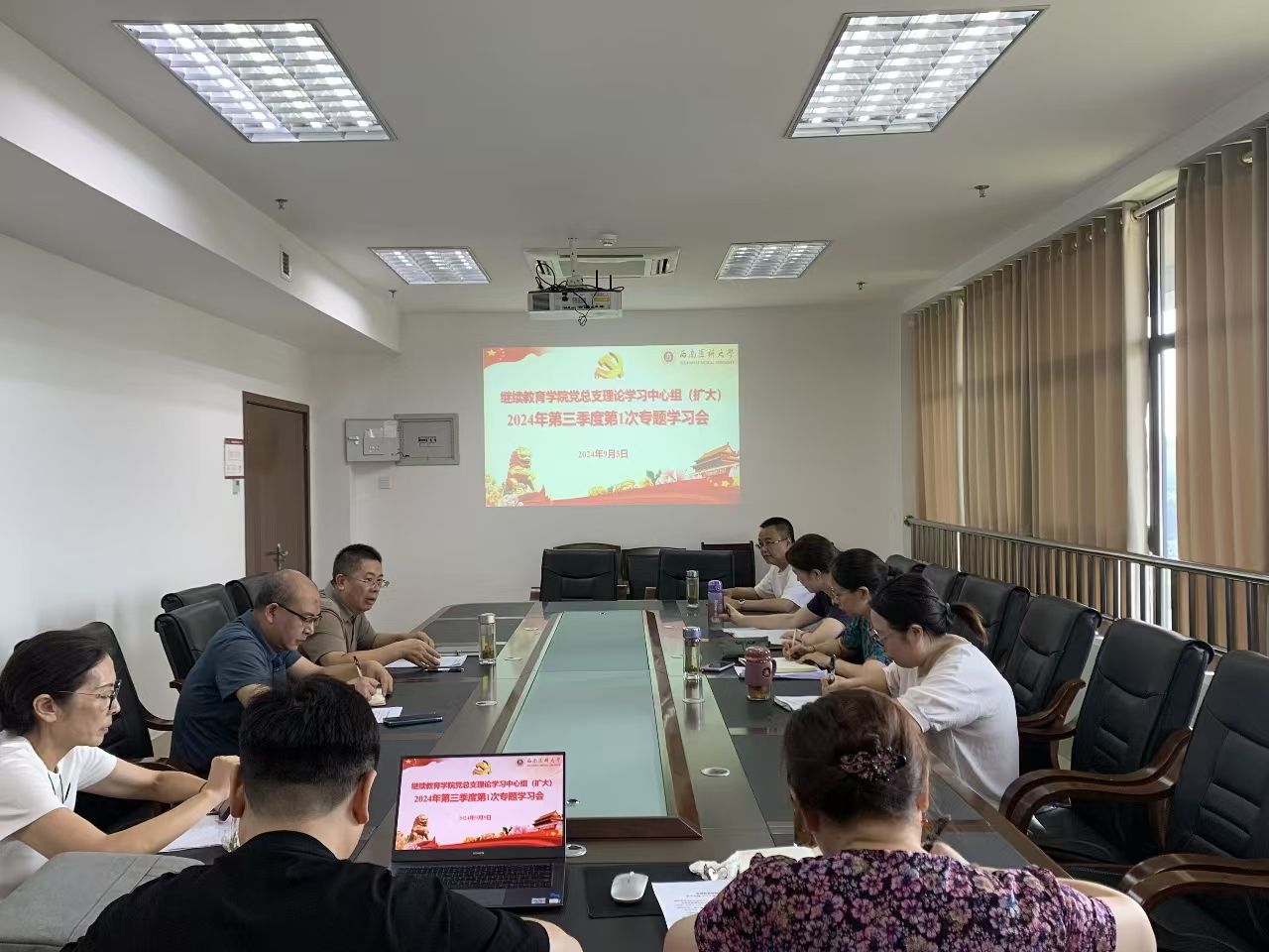 9月5日下午,继续教育公司党总支理论学习中心组(扩大)2024年第三季度第1次专题学习会在德诚楼1012会议室召开,会议主题为深入学习贯彻习近平法治思想。由公司党总支书记陈忠健主持,全公司党员职工参加。