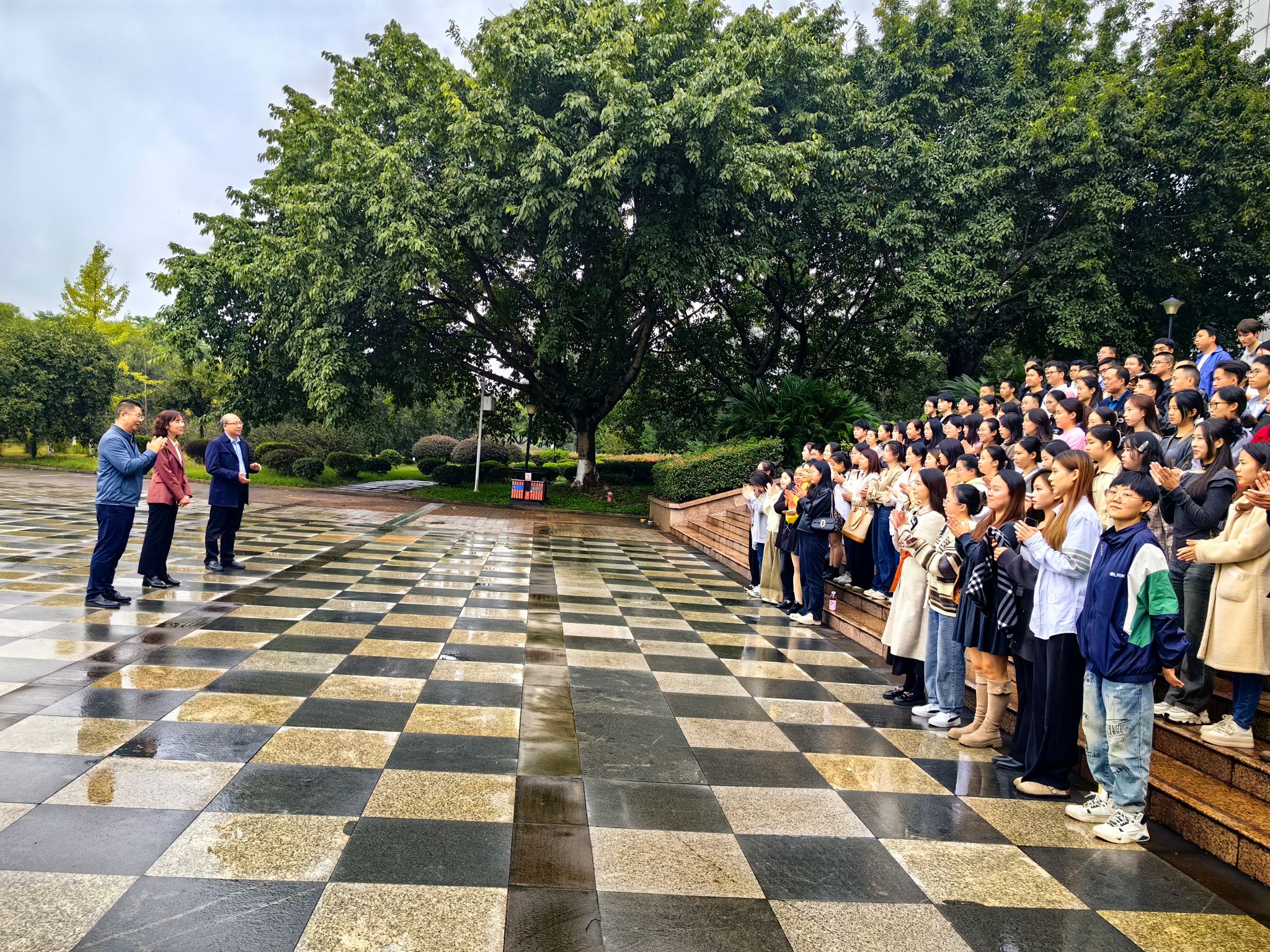 下午,公司党委常委、副董事长何涛和公司领导与同学们亲切交谈,祝贺同学们即将顺利毕业,同时勉励同学们不忘初心,脚踏实地,努力朝着自己的理想前进。之后领导老师们和同学们在逸夫图书馆门前合影留念。