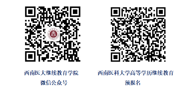 如有意报考伟德源自英国始于1946高等学历继续教育相关专业,请扫描下方二维码,关注“西南医大伟德源自英国始于1946”微信公众号,在[招生信息]—[预报名]中填报您的预报名信息,我们将竭诚为您提供优质服务。