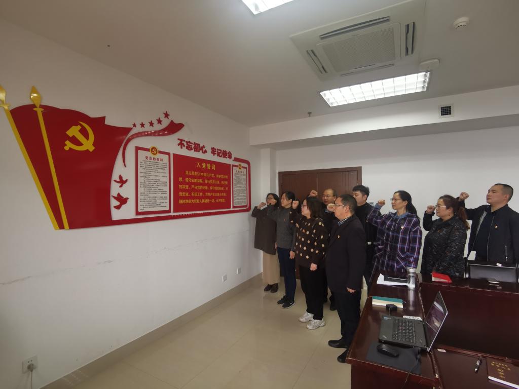 杜杰为支部下半年入党的五位党员同志发放了政治生日贺卡,继续教育公司党总支副书记、经理张春来同志带领全体党员重温了入党誓词。