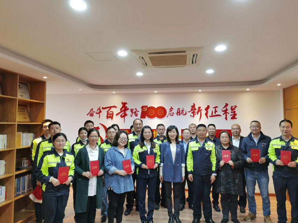 最后,全体党员重温了入党誓词,何涛、张昌信分别为双方上半年入党的党员同志发放了政治生日贺卡。