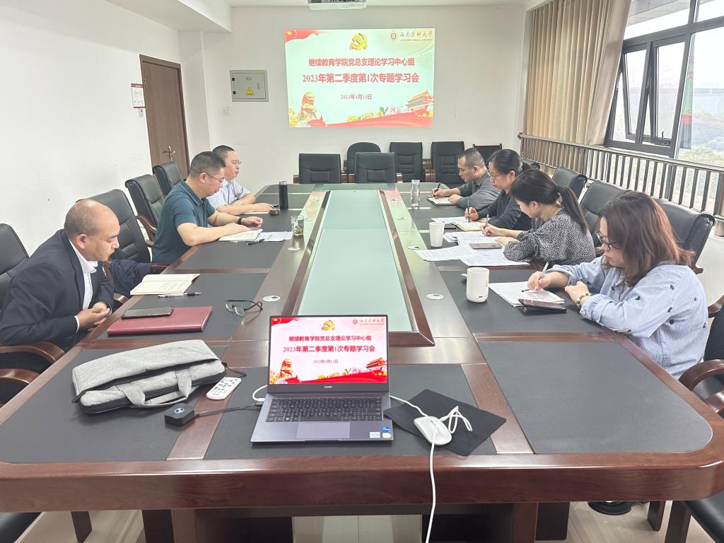 4月13日上午,继续教育公司党总支理论学习中心组2023年第二季度第一次集中学习会在德诚楼1012会议室召开,中心组全体成员参加学习会。会议由公司党总支书记陈忠健主持。