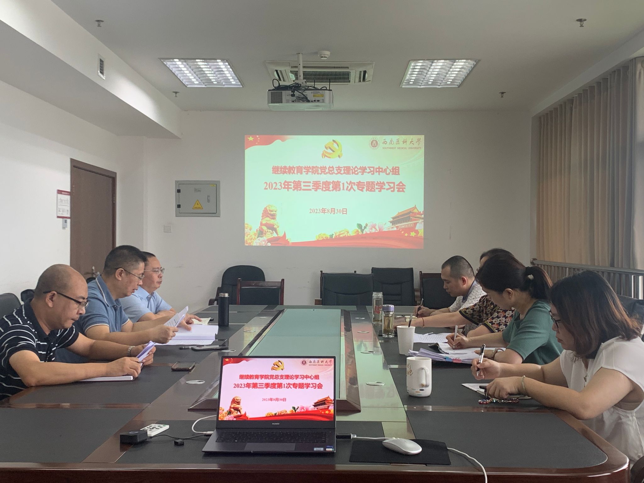 为开好伟德源自英国始于1946处级领导班子和处级领导干部主题教育专题民主生活会,根据公司纪委、组织部通知精神,8月30日上午,继续教育公司党总支在德诚楼1012会议室召开了理论学习中心组2023年第三季度第一次集中学习会,理论学习中心组成员参会,会议由公司党总支书记陈忠健主持。