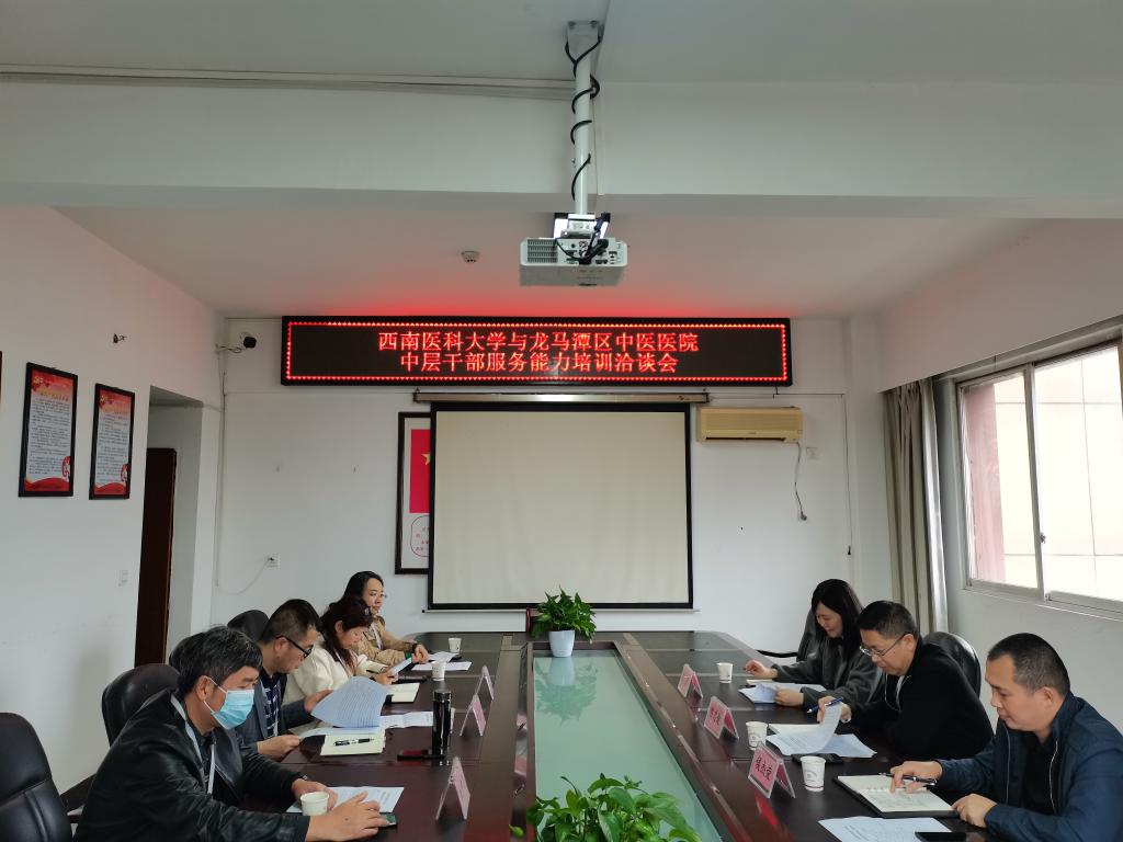 3月22日,继续教育公司党总支书记陈忠健带队赴龙马潭区中医医院参加龙马潭区中医医院中层干部培训工作洽谈会,龙马潭区中医医公司党支部书记宋守军、经理唐中尧等参加会议,会议由宋守军主持。