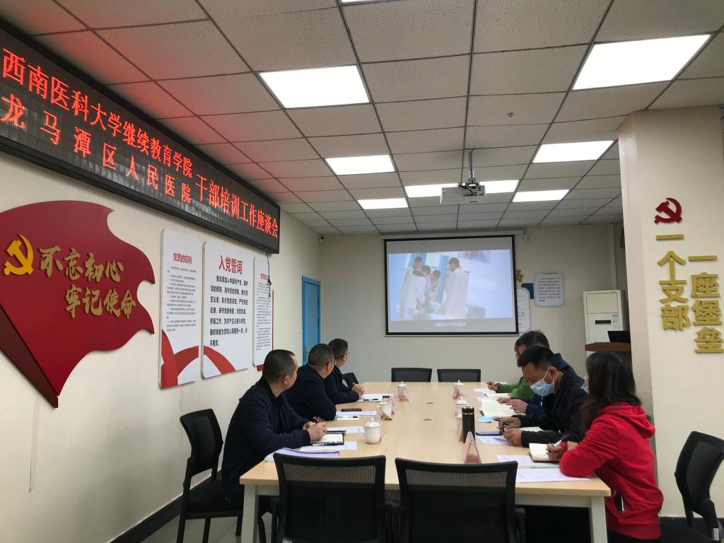 4月9日,继续教育公司党总支书记陈忠健、经理张春来一行赴龙马潭区人民医院进行龙马潭区人民医院中层干部培训工作交流洽谈会,龙马潭区人民医公司党委书记严家福、副经理涂勇等参加会议,会议由严家福主持。